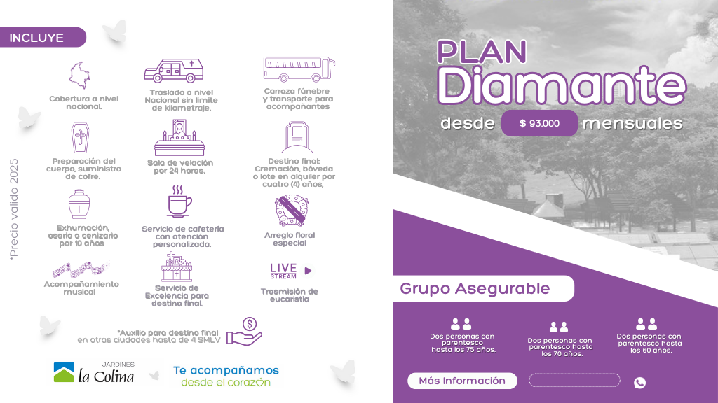 Atención Nacional en los 32 departamentos y 1.112 municipios de Colombia a través de: Red Exequial y Remanso.
